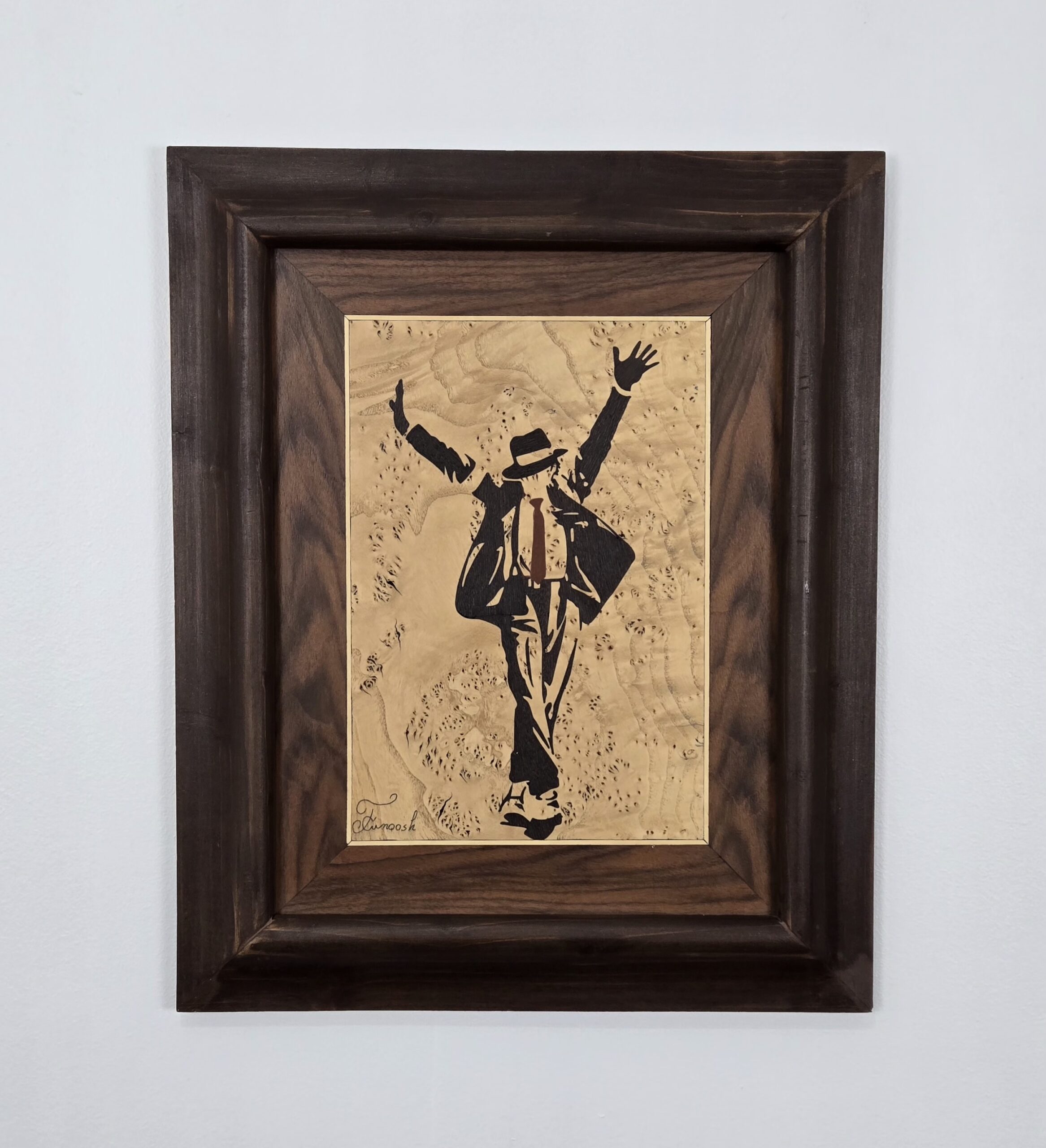 Step into the world of music, movement, and artistry with “Eternal Rhythm,” a stunning handcrafted marquetry artwork that embodies the magic of Michael Jackson. Made exclusively from solid natural wood and timber, this masterpiece is meticulously crafted by cutting and fitting different wood types together—each piece contributing to the depth, texture, and expression of the final design.