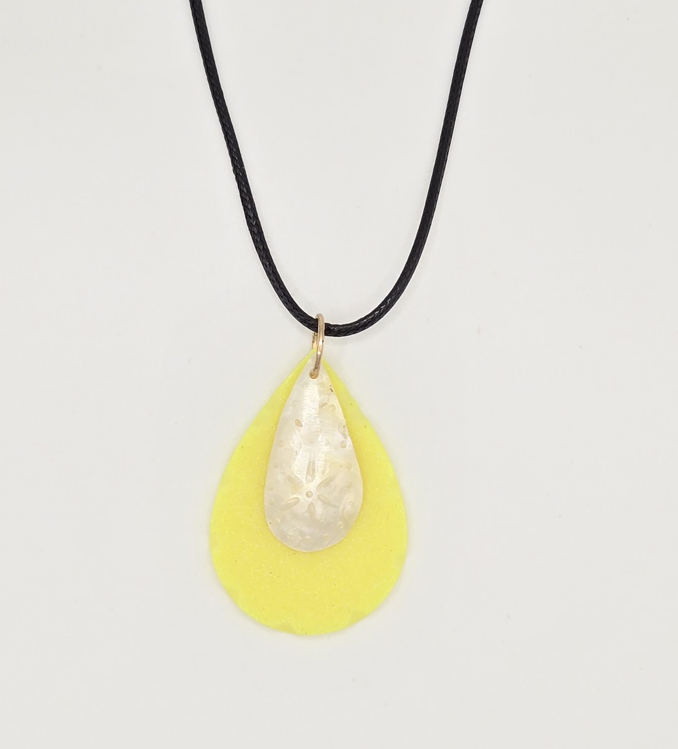 Both elements are connected with delicate gold-tone rings, creating a harmonious blend of textures. The pendant hangs elegantly from a black cord, making it lightweight and comfortable for daily wear.